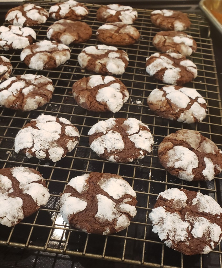 I first saw this recipe on Ethan Chlebowski’s YouTube channel and thought they looked really cool so I decided to give them a try this Christmas. The recipe was easy to follow and the video taught me some new things. For example, I learned that the ideal temperature to cream your butter with sugar is 60 degrees Fahrenheit, and that chocolate chip cookies (and the Christmas Crinkle) are “best” when they reach an internal temperature of 175-185 degrees Fahrenheit.